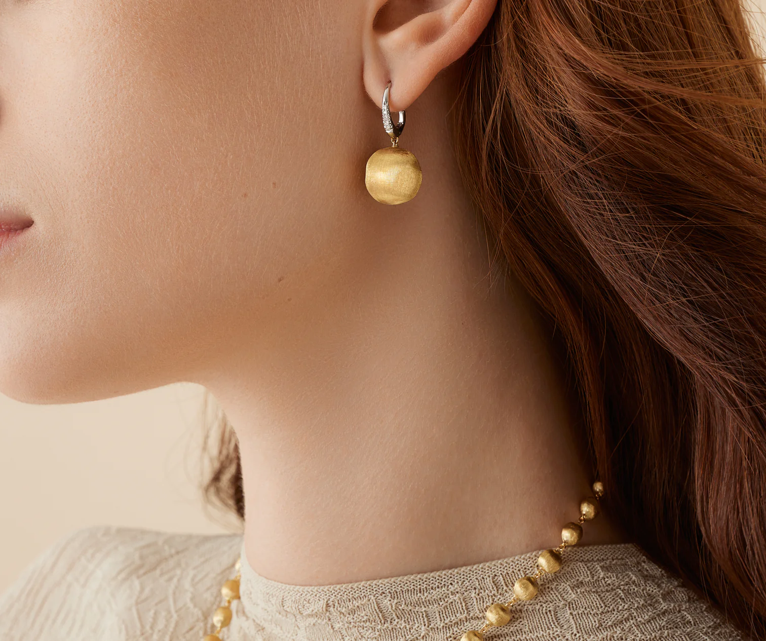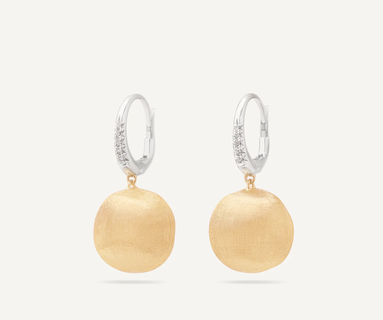 Dal design pulito ed elegante, questi orecchini in oro giallo 18 carati sono finemente incisi a mano con l’antica tecnica del bulino millerighe, per un effetto di straordinaria lucentezza e setosità al tatto. Si agganciano al lobo grazie a un’elegante clip in pavé di diamanti.