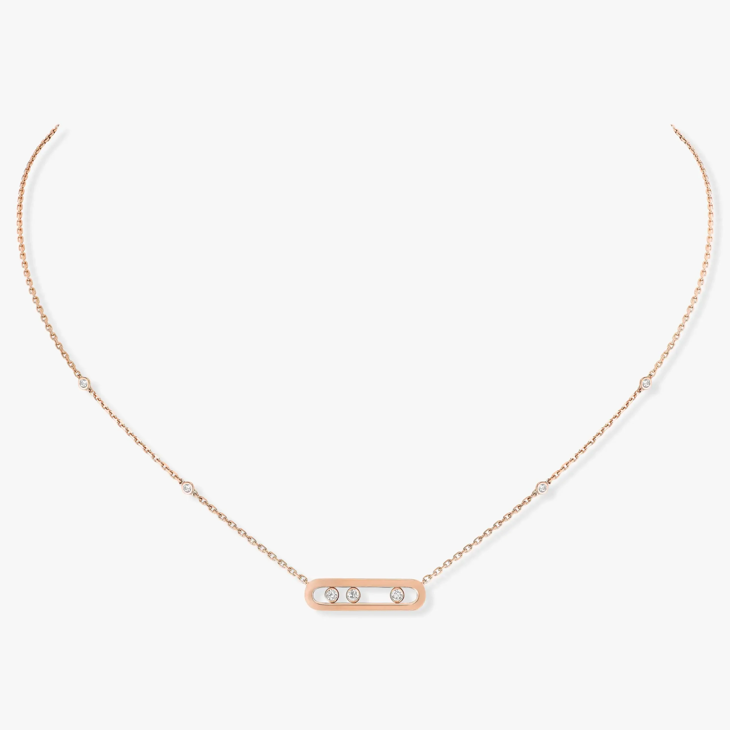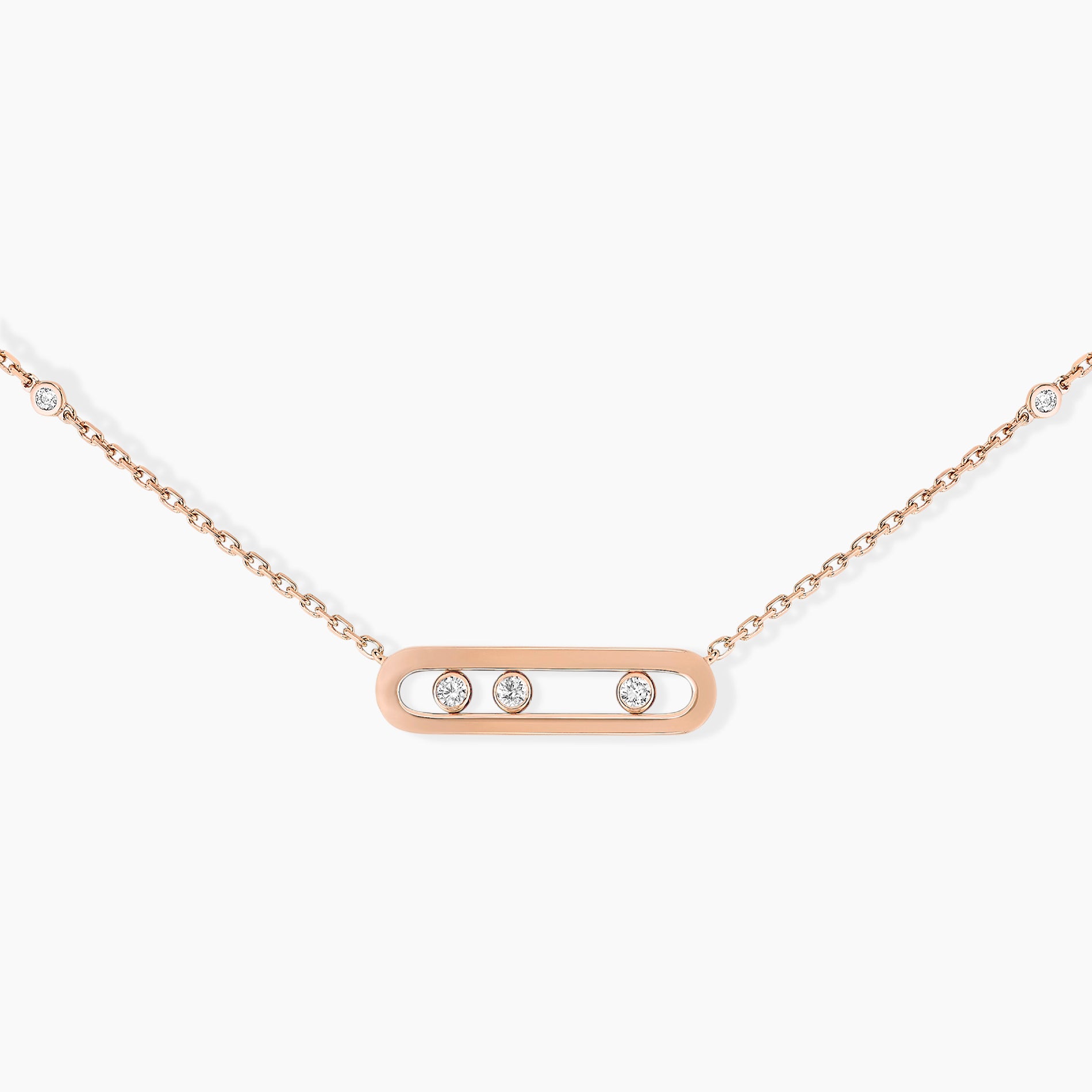 Questa collana con diamanti e oro rosa 18 carati, interamente realizzata a mano, fa parte dell’iconica collezione Move della Maison Messika e si colloca elegantemente sotto la scollatura. I suoi tre diamanti mobili da 0,03 ct ciascuno, simboli dell’amore di ieri, oggi e domani, brillano con i movimenti della donna che lo indossa. L’oro rosa è stato molto di tendenza negli ultimi anni quando si è affermato in gioielleria e gioielleria. Il colore brillante e originale di questa collana in oro rosa e diamanti Baby Move piacerà alle donne che cercano un gioiello con diamanti unico. Sarà altrettanto elegante sia con una camicia casual che con un abito da sera. Dettaglio prezioso: i diamanti che adornano la catena della collana di diamanti in oro bianco Baby Move aggiungono ulteriore brillantezza a questo gioiello unico da donna.