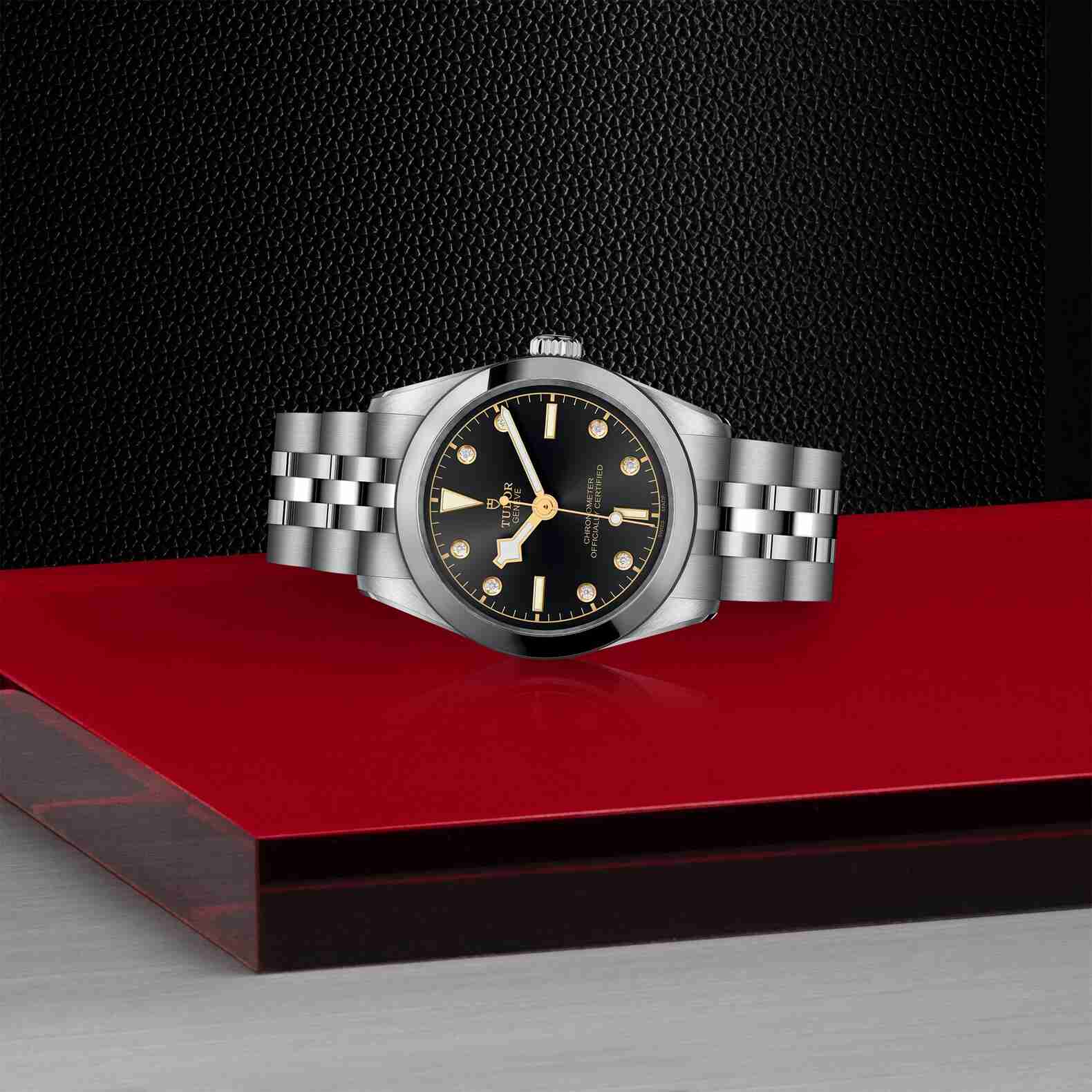 Il Black Bay rende omaggio a 60 anni di tradizione nella produzione di orologi subacquei. Le linee d’insieme e il quadrante e il vetro bombati di questo modello iconico sono un riferimento ai primissimi orologi subacquei TUDOR. Le lancette dalla caratteristica forma spigolosa, note come “Snowflake”, si ispirano agli orologi consegnati in grandi quantità alla Marina francese negli anni ’70.
