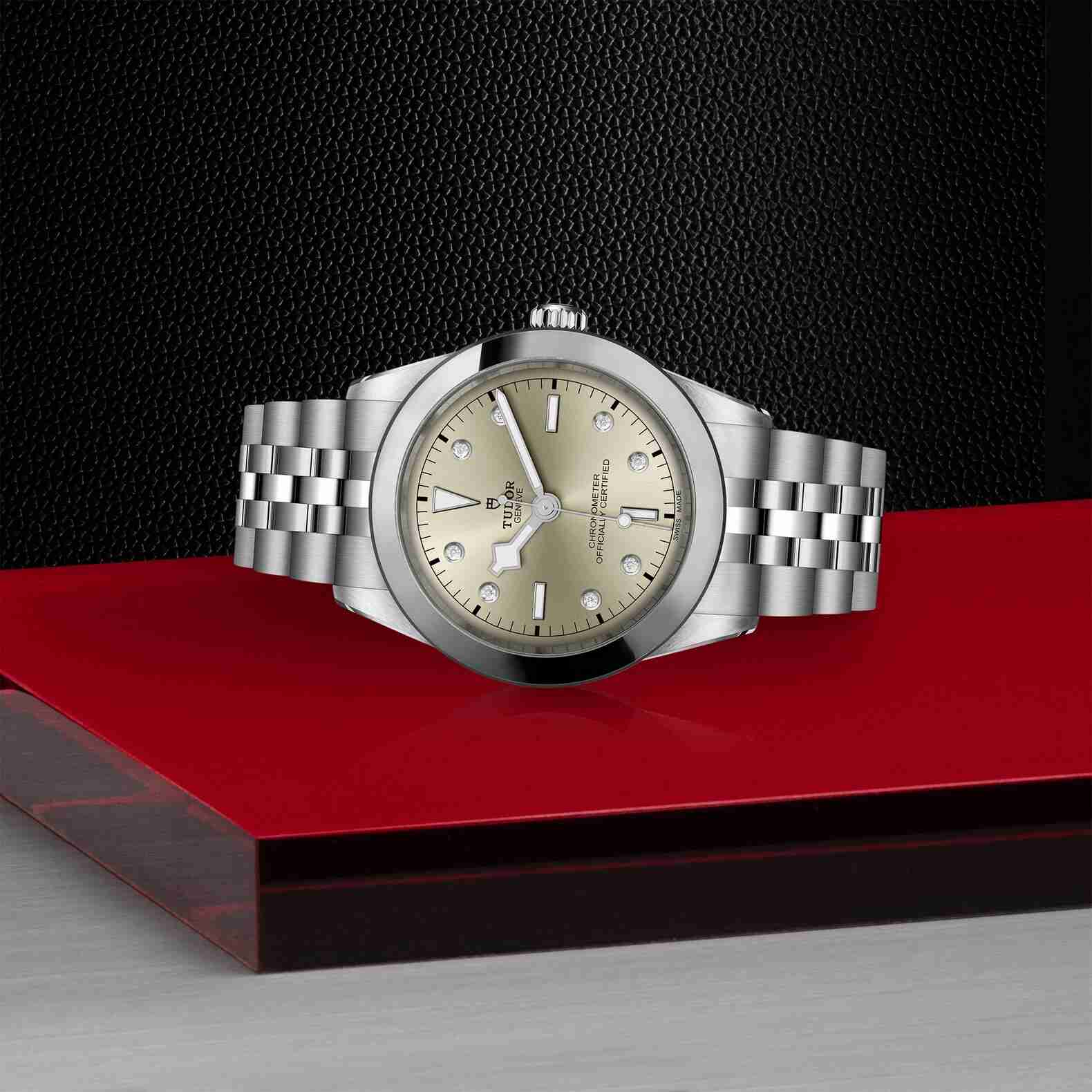Il Black Bay rende omaggio a 60 anni di tradizione nella produzione di orologi subacquei. Le linee d’insieme e il quadrante e il vetro bombati di questo modello iconico sono un riferimento ai primissimi orologi subacquei TUDOR. Le lancette dalla caratteristica forma spigolosa, note come “Snowflake”, si ispirano agli orologi consegnati in grandi quantità alla Marina francese negli anni ’70.