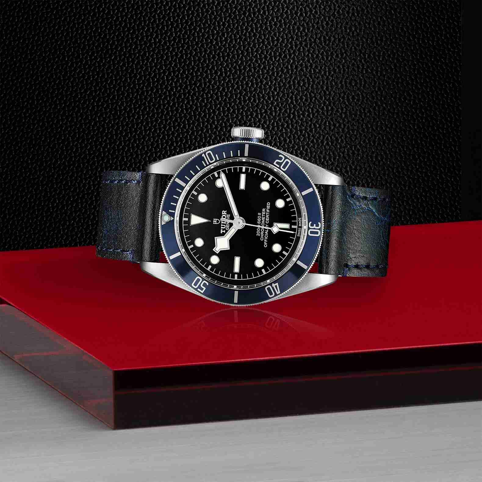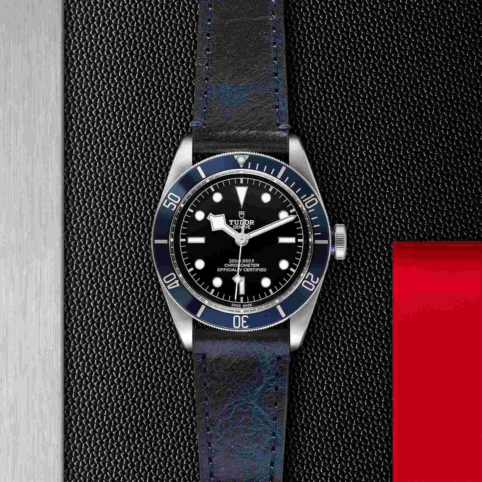 Il Black Bay rende omaggio a 60 anni di tradizione nella produzione di orologi subacquei. Le linee d’insieme e il quadrante e il vetro bombati di questo modello iconico sono un riferimento ai primissimi orologi subacquei TUDOR. Le lancette dalla caratteristica forma spigolosa, note come “Snowflake”, si ispirano agli orologi consegnati in grandi quantità alla Marina francese negli anni ’70.