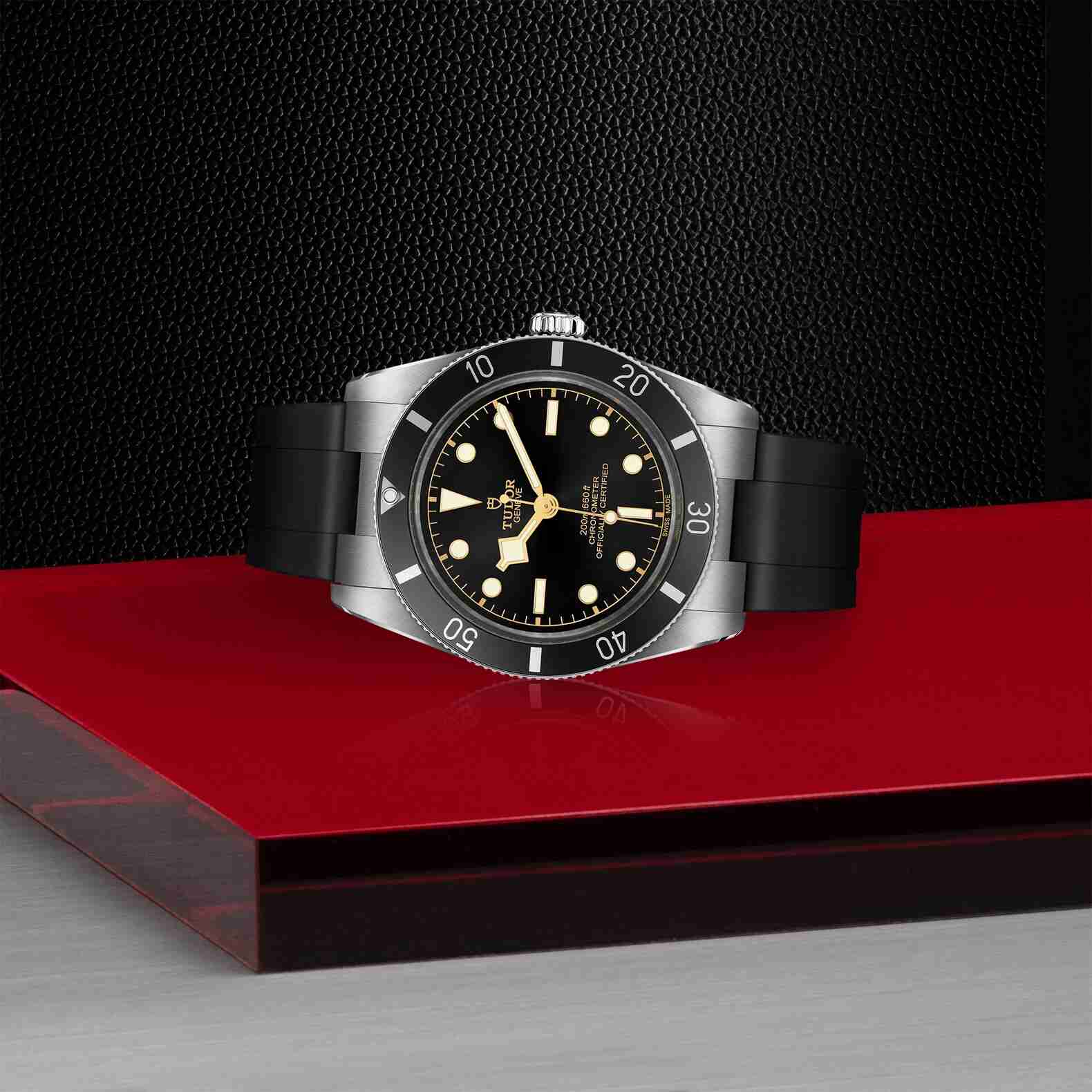 Il Black Bay 54 è il modello più fedele al primissimo orologio subacqueo di TUDOR, la referenza 7922, che sia mai stato creato finora. La cassa di 37 mm riprende le proporzioni classiche di un tempo, ma racchiude nel Calibro di Manifattura MT5400 tutto il know‑how moderno di TUDOR e vanta un’impermeabilità fino a 200 m.