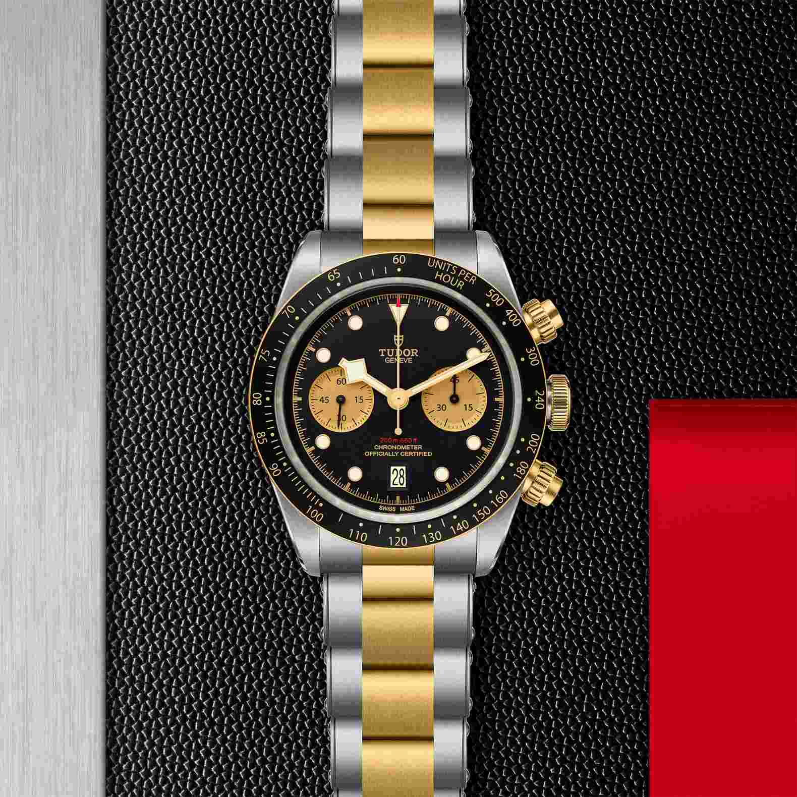 L’orologio ibrido Black Bay Chrono unisce alla tradizione dei modelli subacquei Black Bay la funzione cronografo tipica del mondo delle corse. Le caratteristiche della collezione Black Bay sono preservate nella cassa in acciaio dotata di pulsanti ispirati alla prima generazione di cronografi TUDOR. Una lunetta fissa con scala tachimetrica incisa completa il quadrante di questo cronografo dallo stile sportivo.