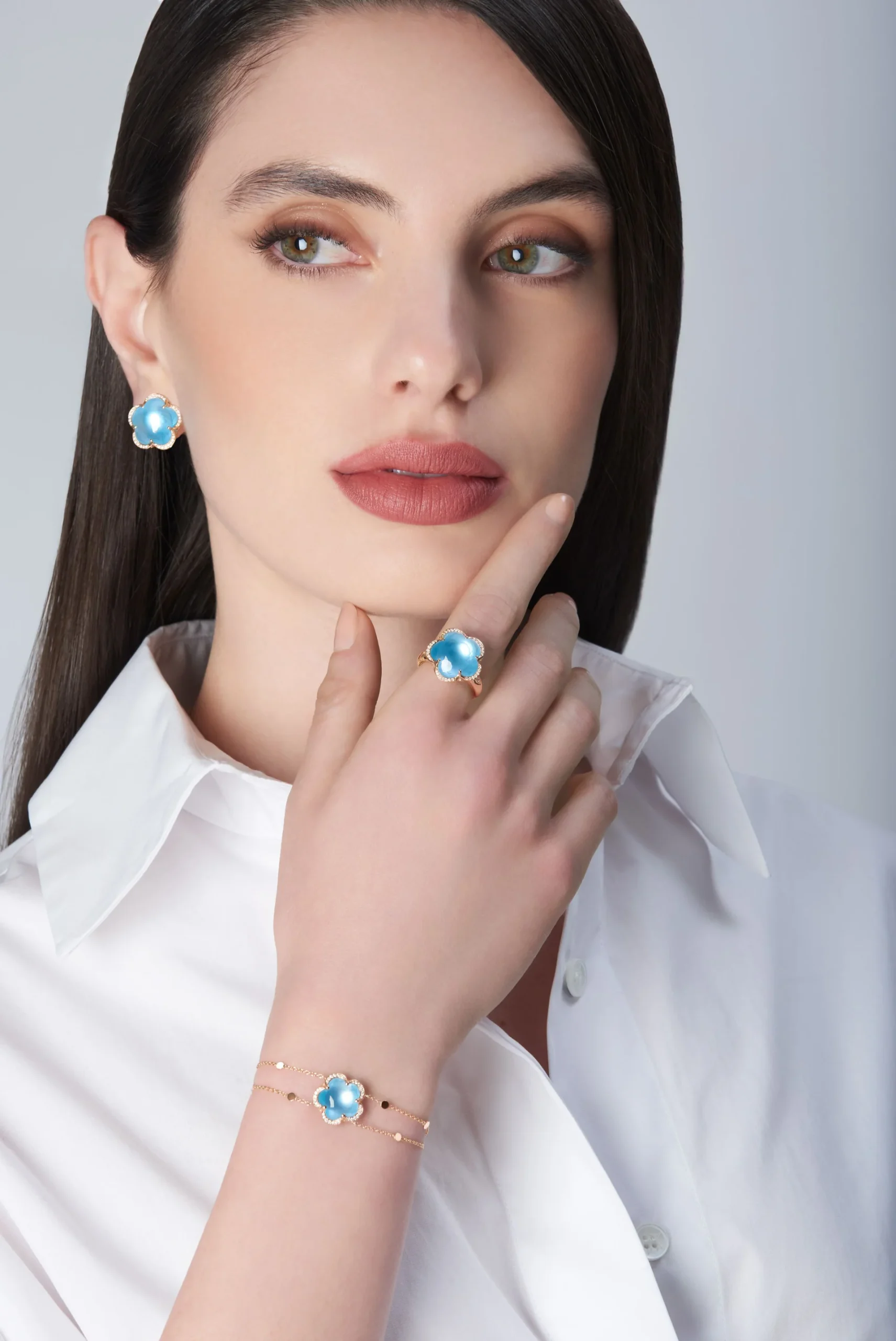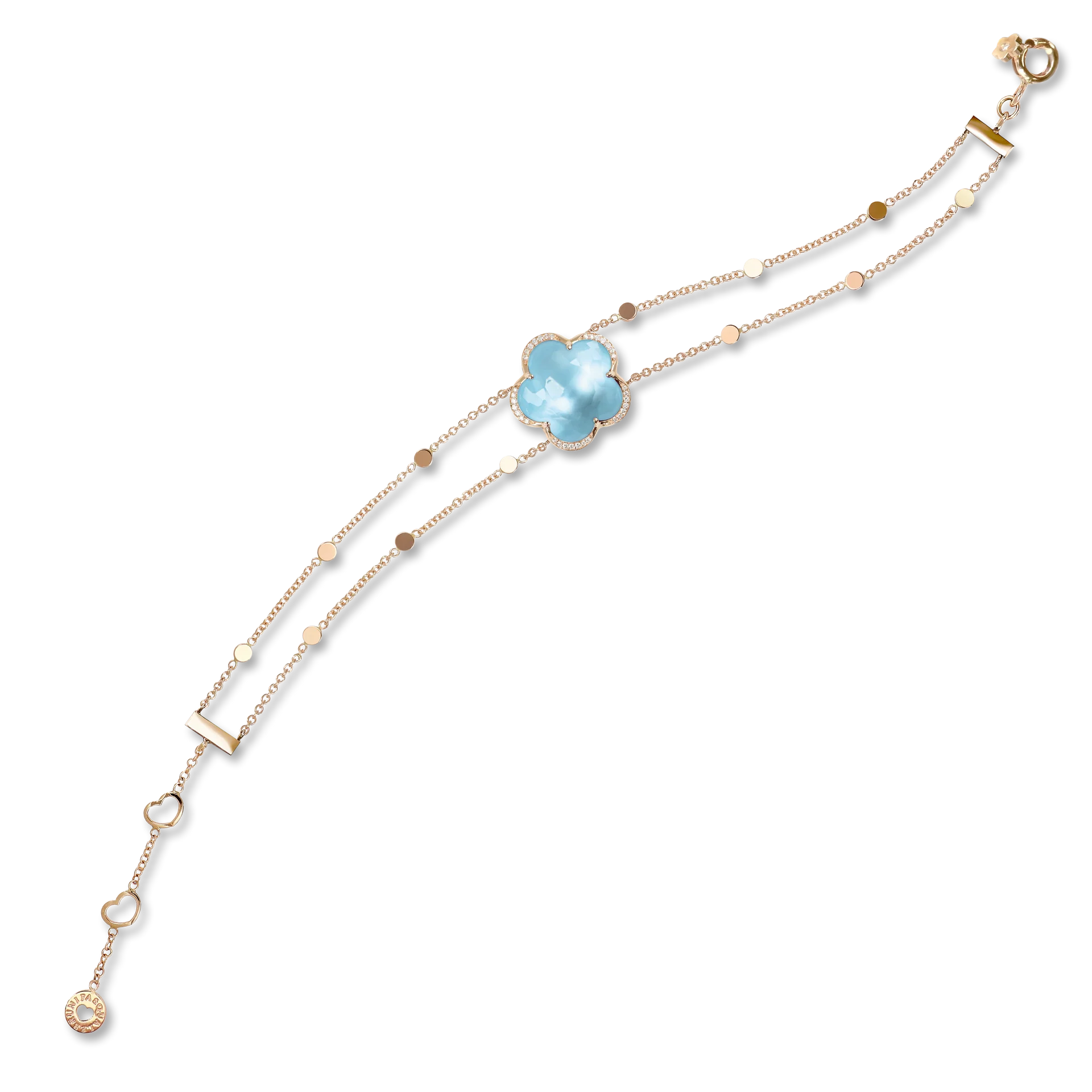 Bracciale in Oro Rosa 18 carati con Topazio Blu Venere e Diamanti Bianchi.