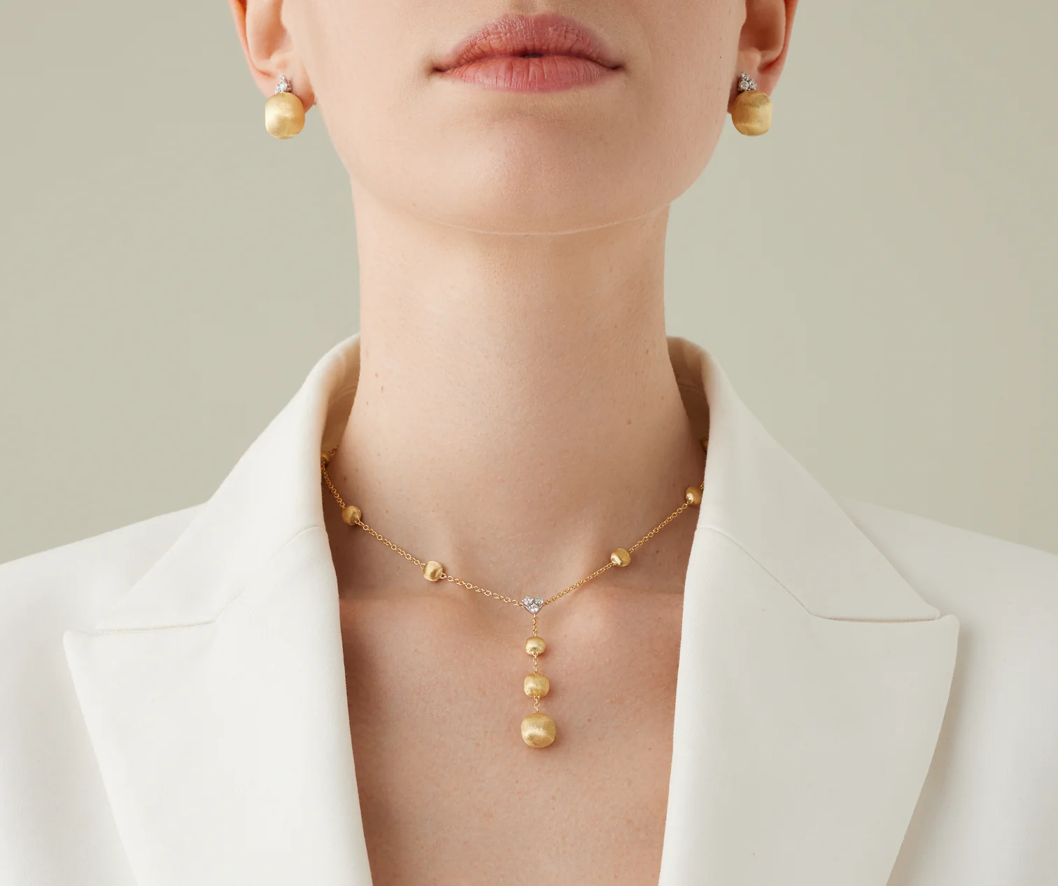 Delicata e preziosa, questa collana a cravatta in oro giallo 18 carati è finemente incisa a mano con l’antica tecnica del bulino millerighe e presenta un delicato punto luce centrale di diamanti. Un gioiello senza tempo che si può abbinare ad altre collane di diversa lunghezza o indossare da solo nella sua raffinata semplicità.