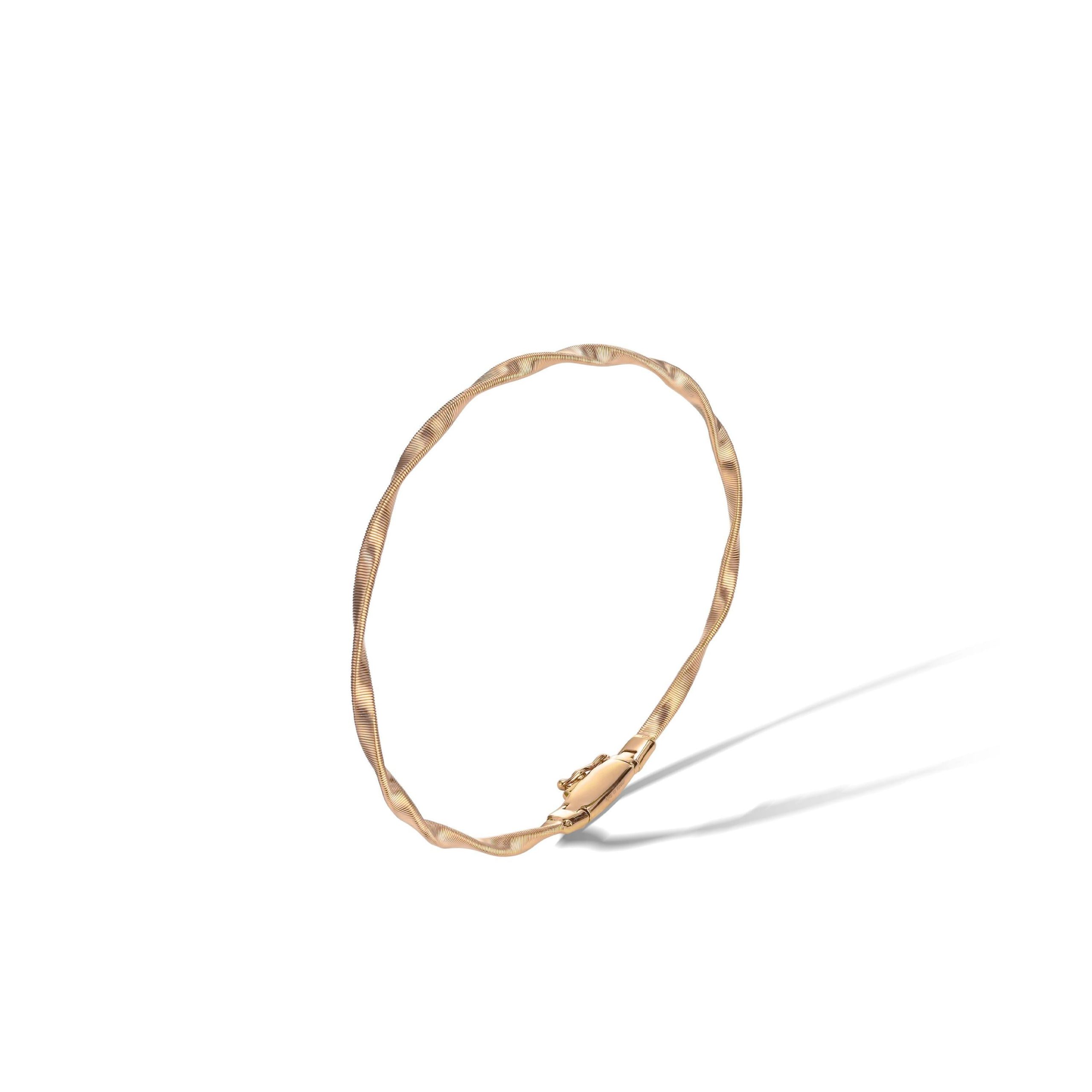 Un filo d’oro rosa 18kt, nella versione bold della spirale ritorta, realizzata grazie all’esclusiva lavorazione artigianale del coil. Un bracciale dal design sofisticato, perfetto se indossato da solo, superbo se abbinato agli altri gioielli Marco Bicego.