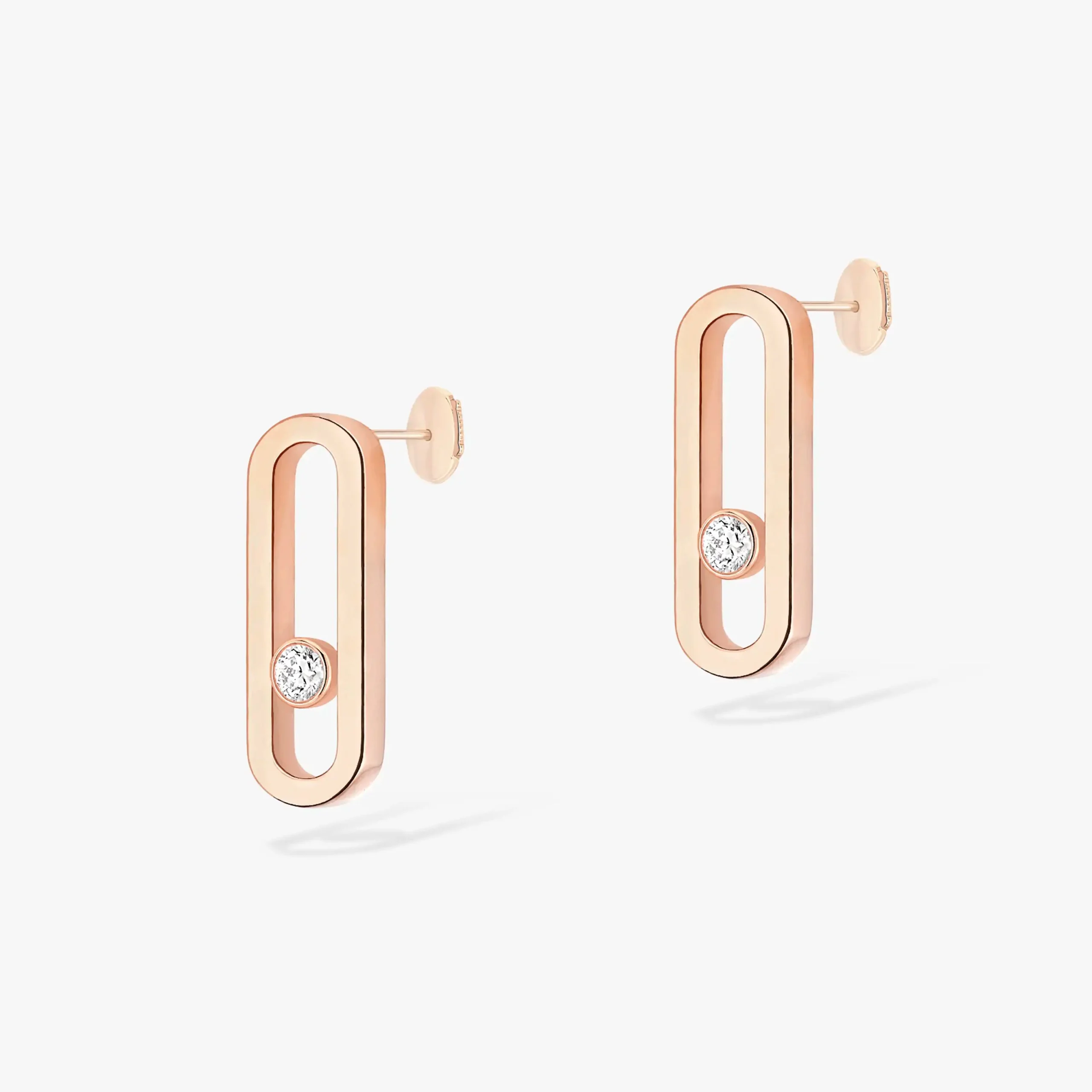Semplice ed elegante, questo paio di orecchini Move Uno in oro rosa e diamanti è il pezzo perfetto per chi desidera un gioiello di lusso facile da indossare tutti i giorni. Realizzato artigianalmente in oro rosa 18 carati, apprezziamo i suoi due diamanti mobili che adornano il centro di ogni motivo. La chiusura fornita da un sistema Alpa garantisce un supporto perfetto. Un design iconico per un modello senza tempo. Per un effetto ancora più stiloso: in certe giornate, non esitare a indossare questo mono orecchino per un look asimmetrico decisamente trendy!