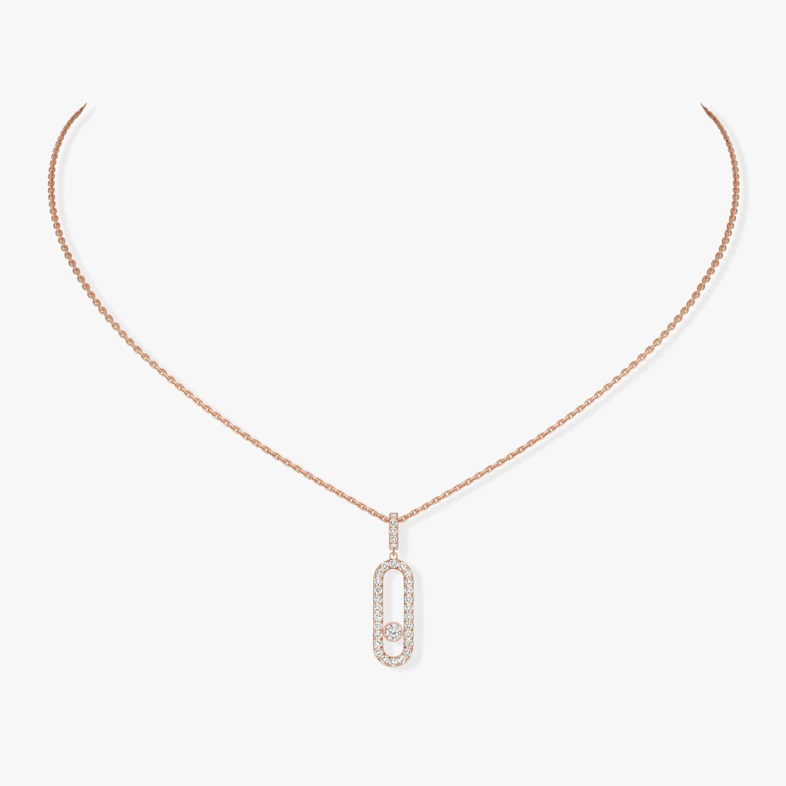 Se ce ne fosse solo uno? Si tratta di questa collana Move Uno modello grande in oro rosa con diamanti. Abbiamo tanti motivi per lodarlo. Iconico, reinterpreta in una nuova dimensione il motivo distintivo della Maison parigina di gioielleria e alta gioielleria. Preziosamente giocoso: ci piace giocare con il suo diamante centrale che scivola all’interno del disegno. Regolabile: apprezzerete particolarmente la chiusura scorrevole di questo gioiello di lusso che permette di indossarlo alla lunghezza desiderata a seconda della scollatura; girocollo, girocollo o più lungo, scegli in ogni momento la lunghezza più adatta a te. Facile da indossare da solo o abbinato ad altre collane di diamanti, diventerà presto il tuo gioiello preferito!