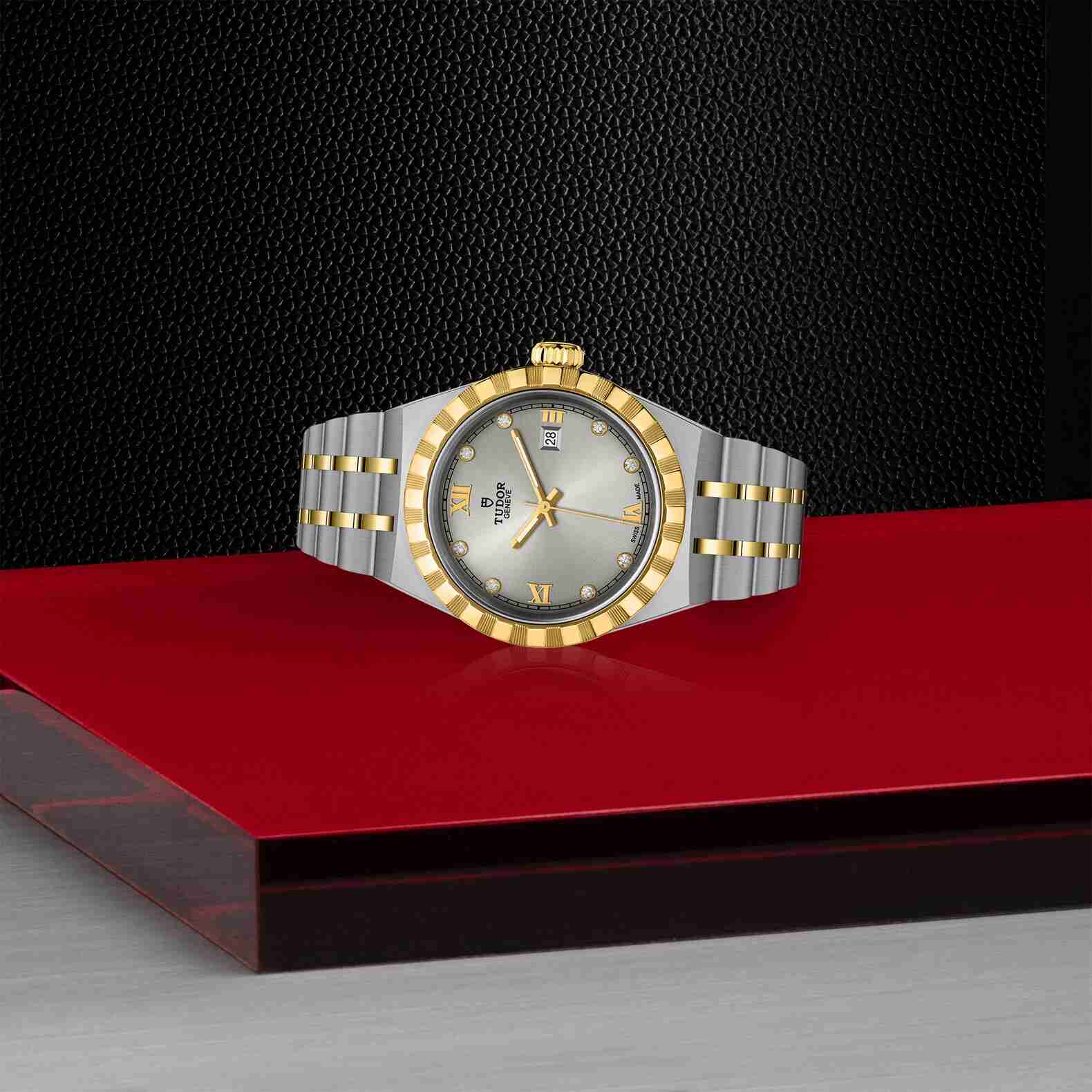 Il nome Royal fu usato per la prima volta da TUDOR negli anni ’50 per sottolineare la qualità superiore dei suoi orologi. La linea TUDOR Royal rientra nella tradizione del Marchio di proporre segnatempo dallo stile sportivo ed elegante, con movimenti automatici e bracciali integrati, ad un prezzo accessibile ma che non scendano a compromessi sulla qualità. Orologi dalle prestazioni tecniche all’avanguardia e l’estetica raffinata, al crocevia tra i modelli classici e quelli sportivi, i segnatempo di questa linea sono disponibili in acciaio inossidabile o acciaio inossidabile e oro e proposti in quattro misure con una vasta selezione di quadranti.